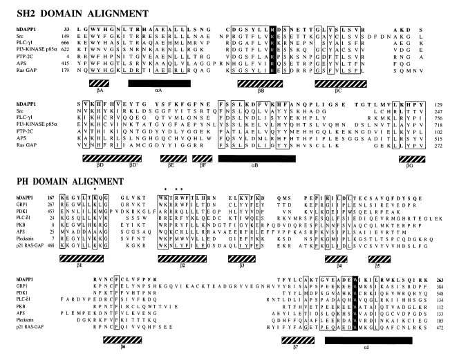 蛋白质测序,DAPP1 的 SH2 和 PH 结构域与其他具有这些结构域的蛋白质的比对 |