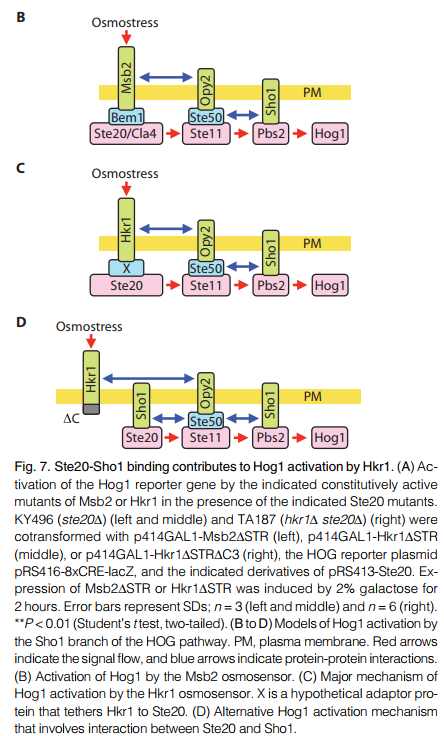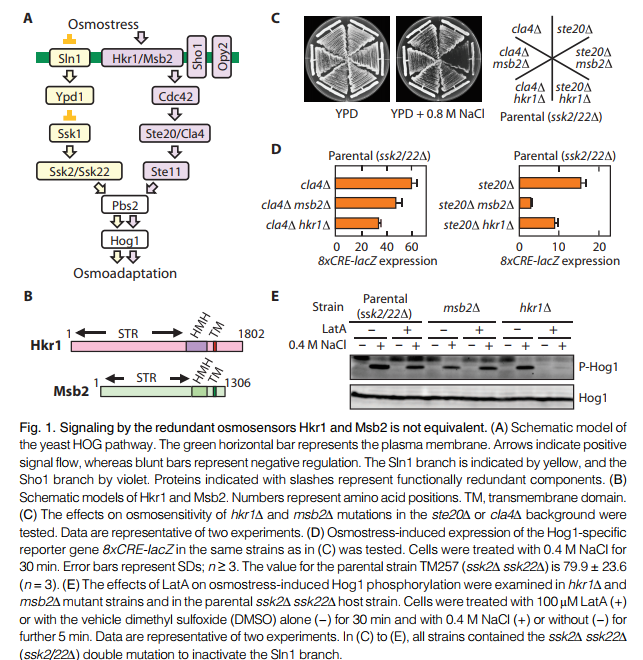 构造基因敲除酵母系进行微生物实验初步表明Msb2与Hkr1激活Hog1属于不同途径 |